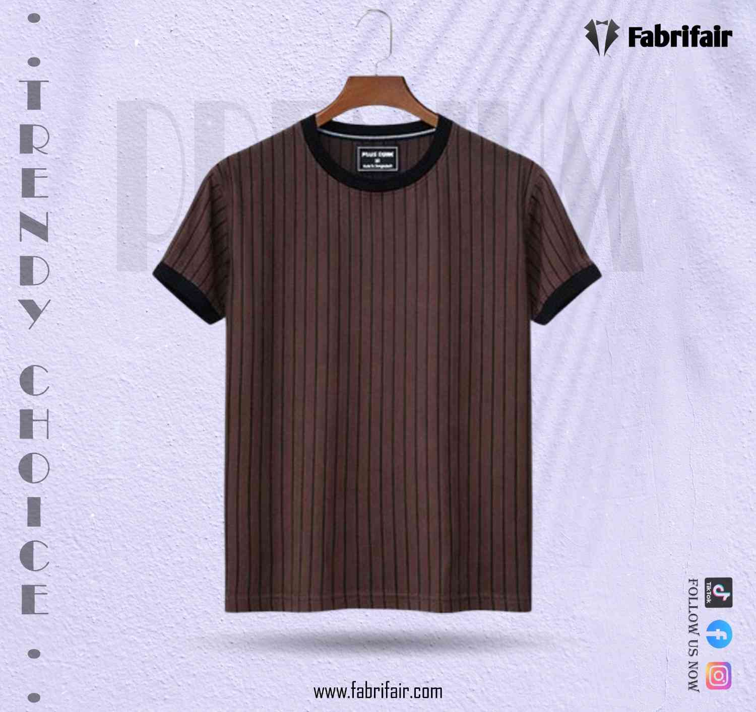 Mens Premium Cotton T-Shirt - Brown with Black Stripes