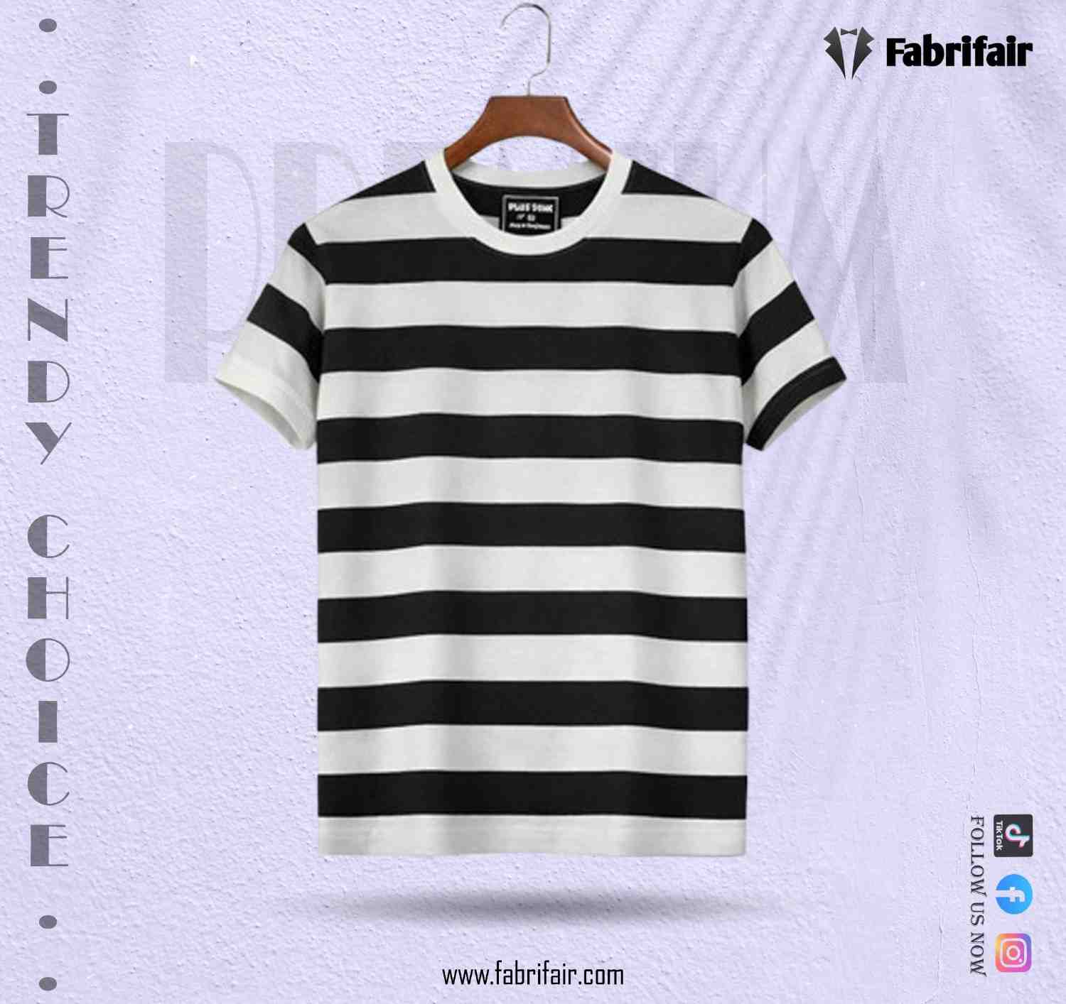 Mens Premium Cotton T-Shirt - Monochrome Stripes